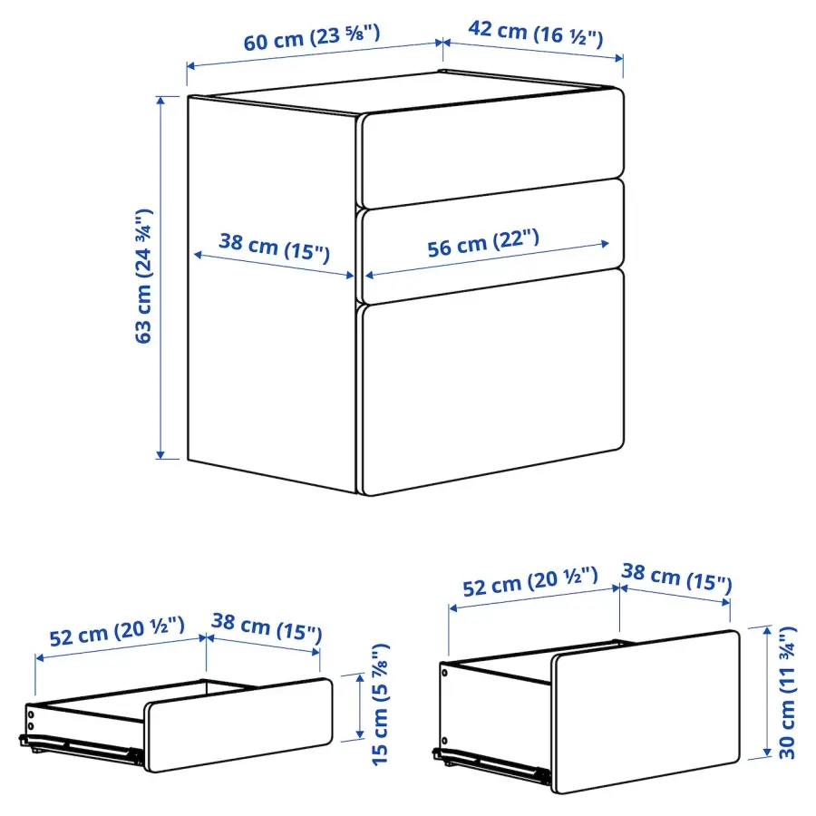 ИКЕА IKEA Этот комод дает вам много места для хранения на небольшой площади. Идеальная высота для маленьких детей. Они могут легко дотягиваться и находить вещи самостоятельно. Этот предмет мебели для хранения может следовать за вашим ребенком от малышей до подростков и до тех пор, пока у них не появится собственное место. Продуманная конструкция направляющих позволяет ящику слегка втягиваться, когда его выдвигают, чтобы сэкономить место. Регулируемые ножки позволяют компенсировать любые неровности пола. Оригинальная икея/ikea