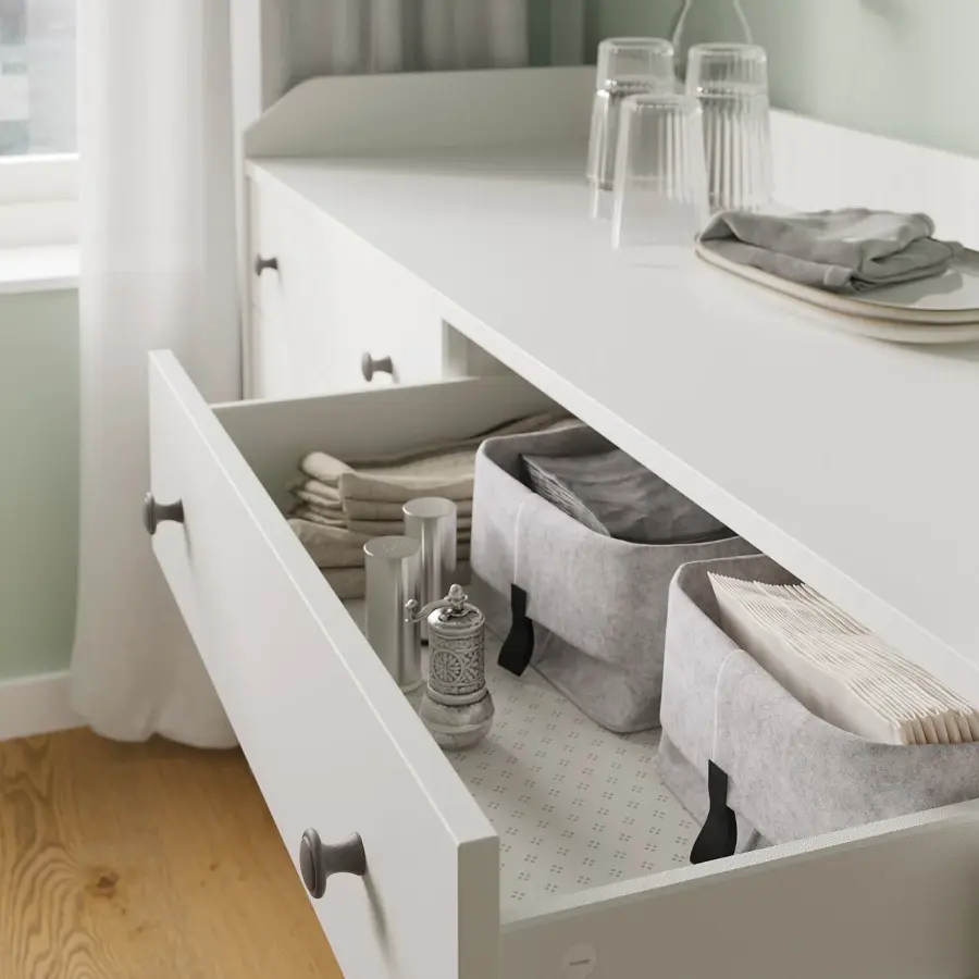 ИКЕА IKEA Конечно, ваш дом должен быть безопасным местом для всей семьи. Вот почему в комплект входит защитная фурнитура, чтобы вы могли прикрепить комод к стене. Предназначена для использования в доме как самостоятельно, так и идеально сочетается с другой мебелью серии HAUGA, либо для согласования стиля, либо для создания больших решений для хранения. Благодаря характерному внешнему виду и продуманному дизайну мебель серии HAUGA хорошо работает сама по себе и даже лучше вместе. Плоские, гладкие стороны создают бесшовные блоки, когда предметы располагаются рядом друг с другом. Универсальный предмет мебели, который можно использовать в самых разных комнатах дома. Максимизируйте пространство для хранения и создайте согласованный вид, создав собственную комбинацию хранения HAUGA. Характерная верхняя полка является общей чертой всей серии HAUGA и дополняет традиционный стиль. Независимо от того, используете ли вы его для шляп, коробок или украшений, край удерживает ваши вещи на месте. Широкий комод дает вам много места для хранения, а также место для ламп или других предметов, которые вы хотите разместить наверху. Если вы хотите организовать внутри, вы можете дополнить интерьер аксессуарами из серии STUK. Каркас легко собрать благодаря конструкции с клиновидным дюбелем, который легко защелкивается в предварительно просверленных отверстиях. Оригинальная икея/ikea