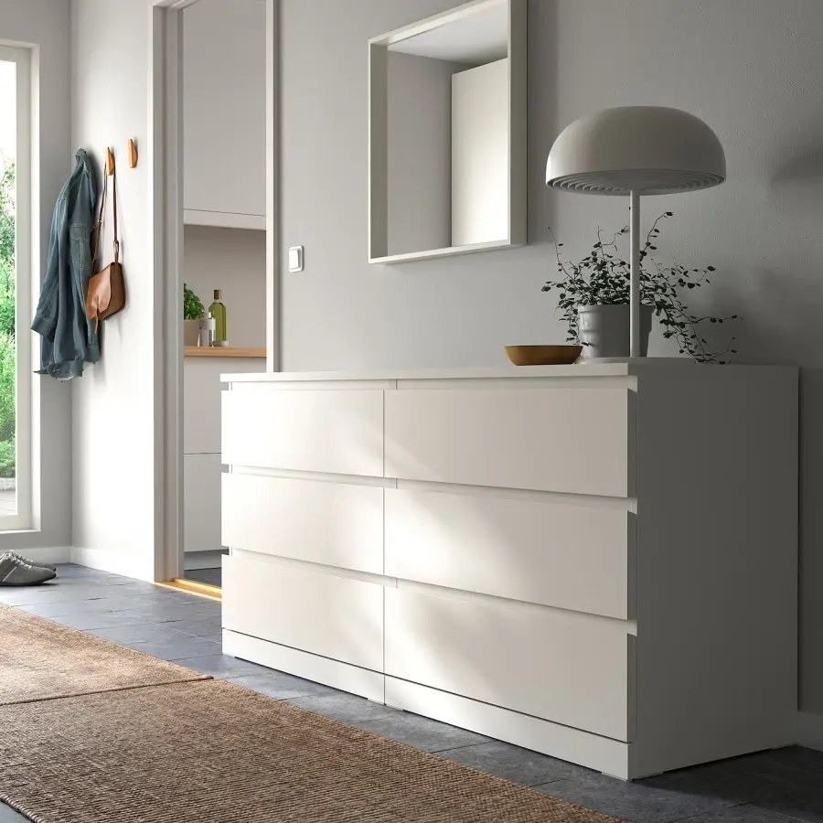 ИКЕА IKEA Конечно, ваш дом должен быть безопасным местом для всей семьи. Вот почему в комплект входит защитная фурнитура, чтобы вы могли прикрепить комод к стене. Ящики с плавным ходом и стопором для выдвижения. Если вы хотите навести порядок внутри, вы можете дополнить коробку СКУББ, набор из 6 штук. Оригинальная икея/ikea
