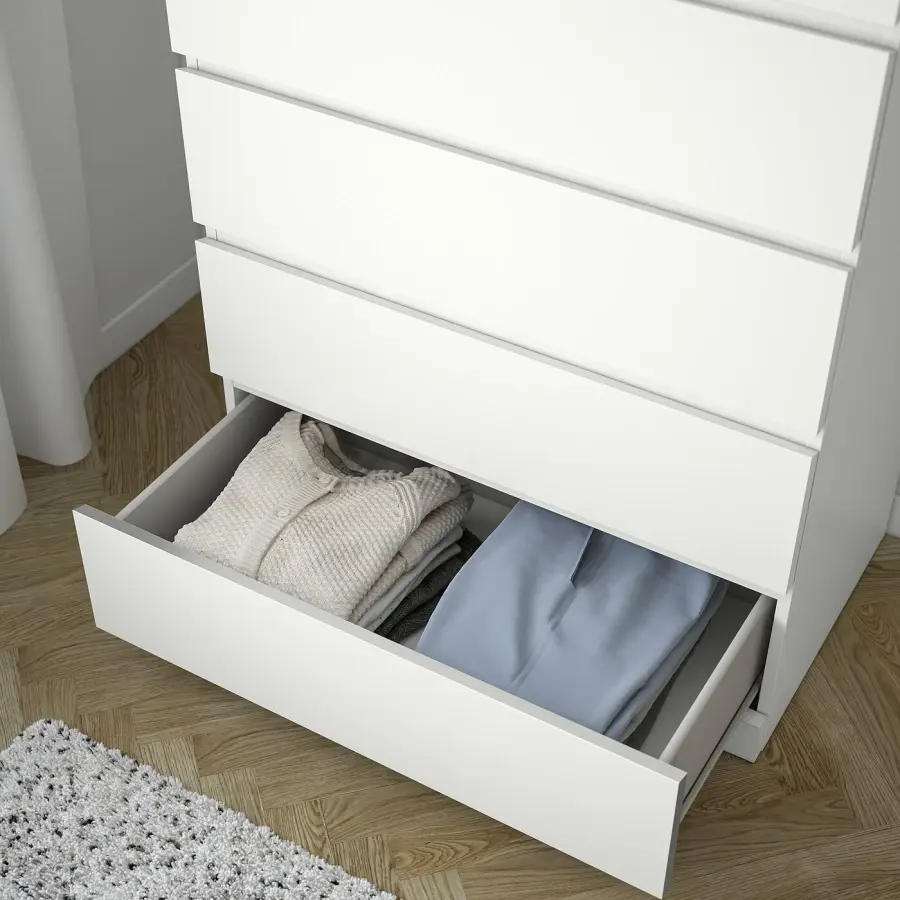 ИКЕА IKEA Конечно, ваш дом должен быть безопасным местом для всей семьи. Вот почему в комплект входит защитная фурнитура, чтобы вы могли прикрепить комод к стене. Ящики с плавным ходом и стопором для выдвижения. Если вы хотите навести порядок внутри, вы можете дополнить коробку СКУББ, набор из 6 штук. Оригинальная икея/ikea
