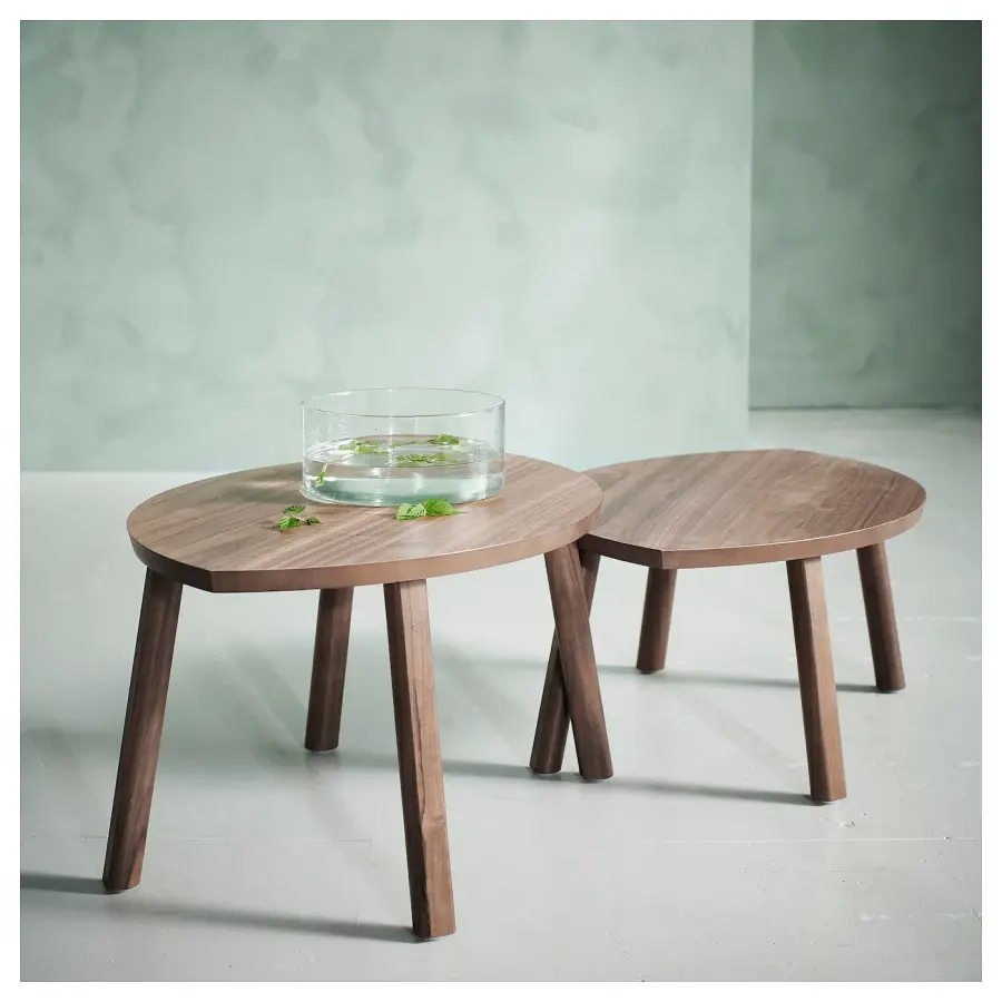 ИКЕА IKEA Поверхность стола из шпона орехового дерева и ножки из массива ореха придают комнате ощущение тепла и естественности. Характерный рисунок зернистости шпона ореха придает каждому столу уникальный характер. Орех — натуральный износостойкий материал. Поверхность стала еще более прочной благодаря защитному покрытию лаком. Столы в форме листьев выглядят в комнате декоративно. Вы можете расставить их по отдельности или собрать вместе, чтобы получился большой журнальный столик. Оригинальная икея/ikea