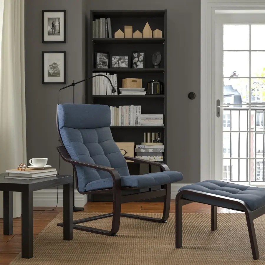 Кресло и подставка для ног - POÄNG / POАNG IKEA/ ПОЭНГ ИКЕА, 72х62 см, синий
