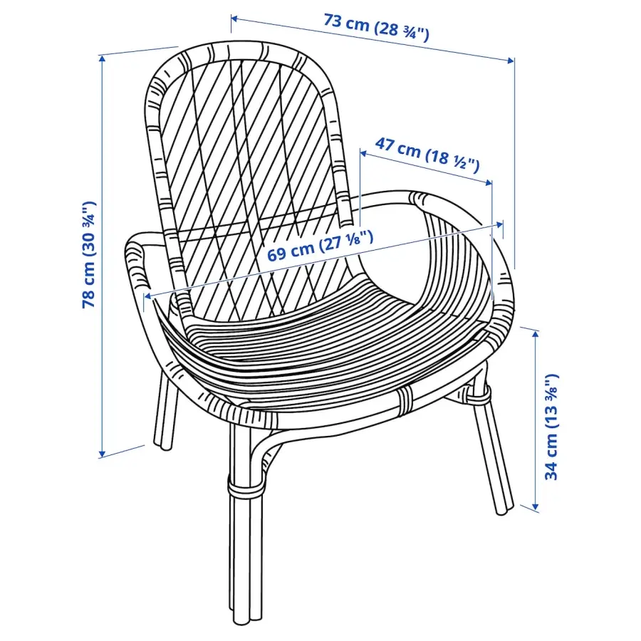 ИКЕА IKEA Изготовлено из сотканного вручную ротанга — живого материала, который делает каждое кресло уникальным. Легкое и в то же время прочное кресло позволяет вам удобно сидеть в нем. Отличный способ привнести природу в свой дом. Оригинальная икея/ikea