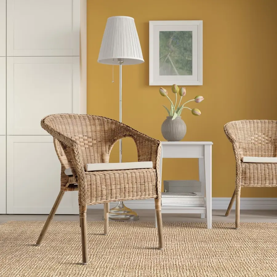 ИКЕА IKEA Мебель изготовлена вручную и поэтому уникальна. Ротанг — натуральный материал, который прекрасно стареет и со временем приобретает свой уникальный характер. Можно штабелировать; экономит место, когда не используется. Подушку можно перевернуть, поэтому она имеет две стороны для равномерного износа. Оригинальная икея/ikea