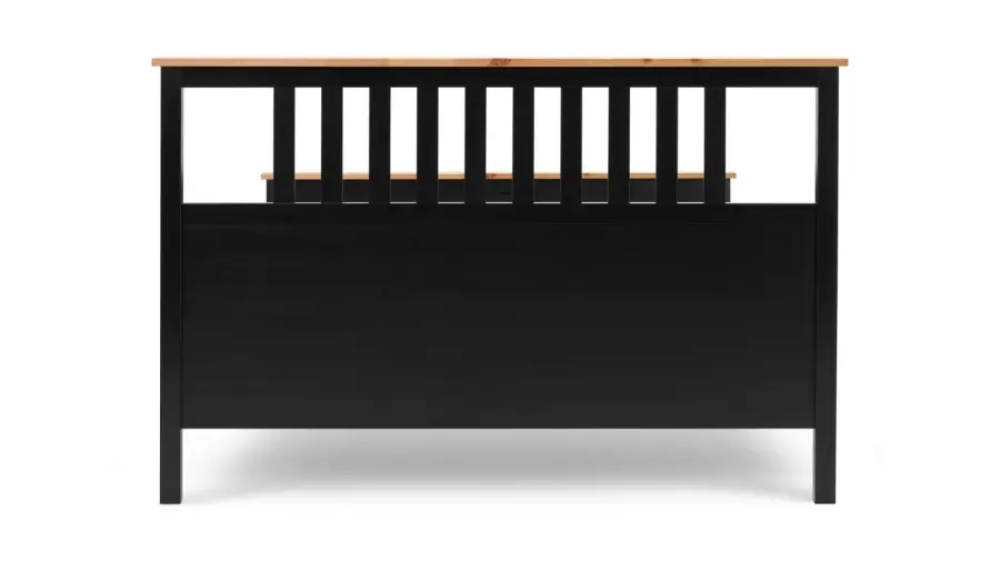 - Изготовлен из массива сосны. Дерево пропитано морилкой и покрыто прозрачным лаком на водной основе.