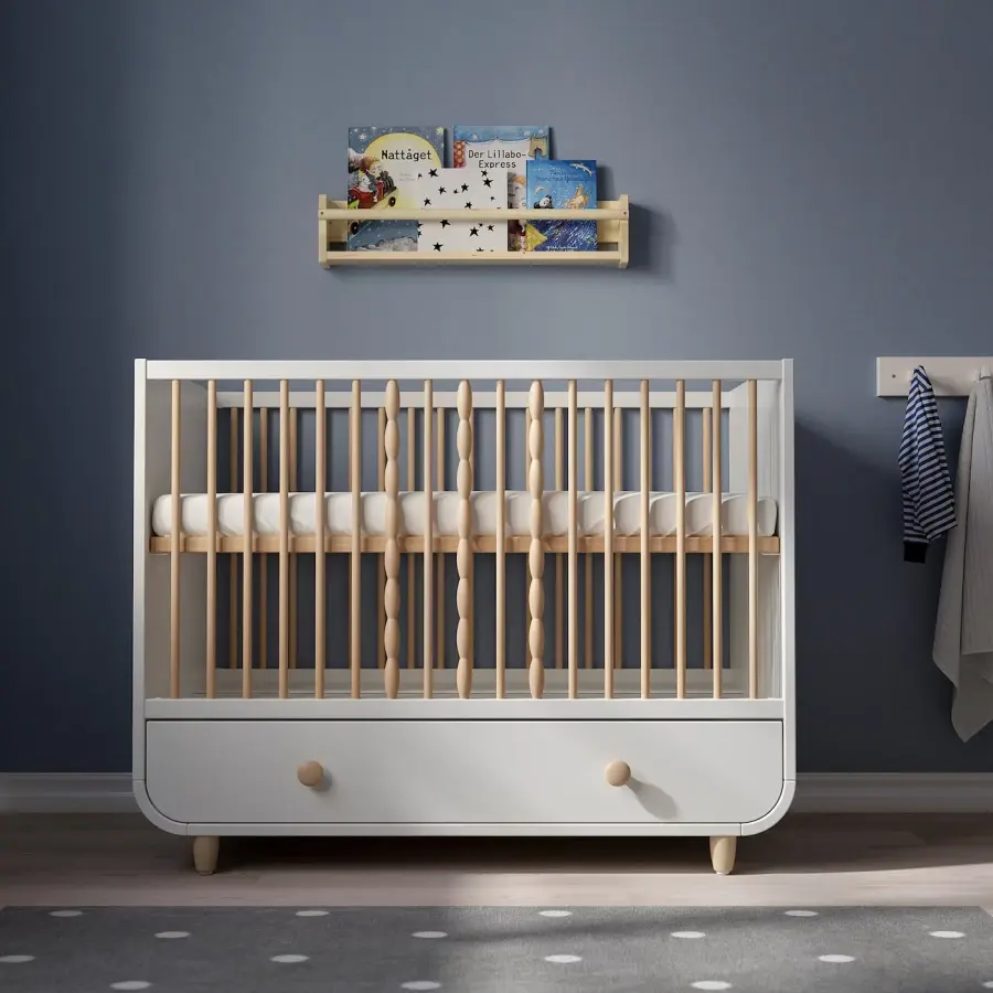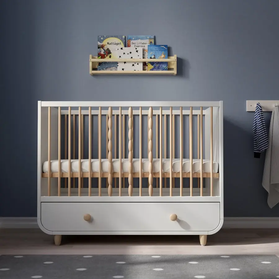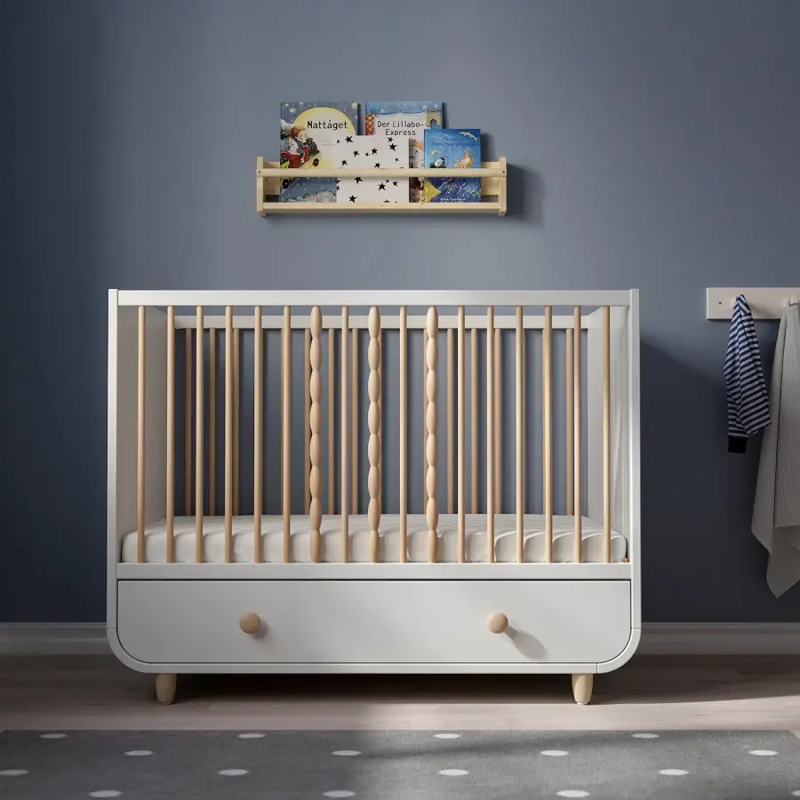 ИКЕА IKEA Если вы хотите создать полную детскую комнату в едином стиле, вы можете комбинировать кроватку с серией для хранения SMÅSTAD — они идеально сочетаются друг с другом. Как родитель, вы будете поднимать своего ребенка в кроватку много раз, поэтому, чтобы быть бережным к вашей спине, мы сделали это основание кроватки регулируемым по трем различным высотам. Одну сторону кроватки можно снять, когда ребенок достаточно большой, чтобы забраться в кроватку или выйти из нее. входит в комплект. Внизу кроватки есть вместительный ящик, в котором можно хранить одеяла, игрушки или дополнительное постельное белье. Вместительный ящик плавно ходит и закрывается мягко и бесшумно. Оригинальная икея/ikea