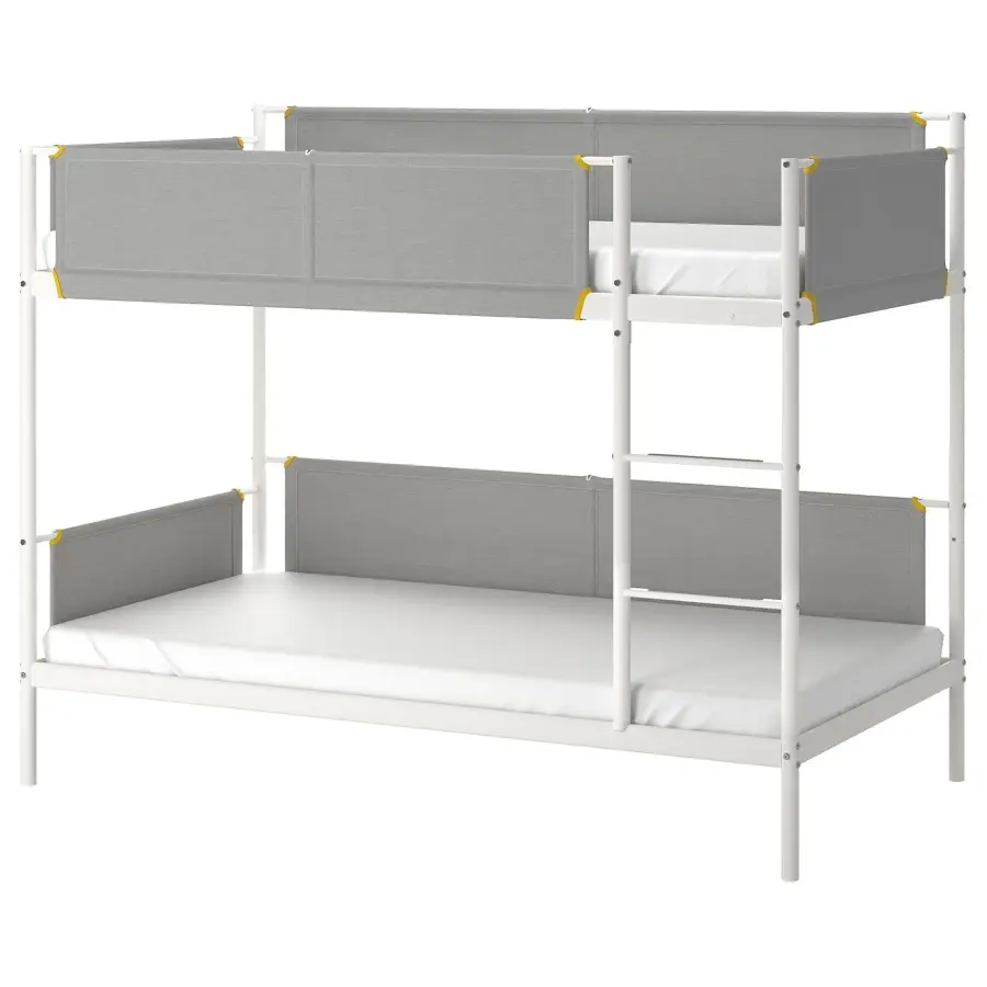 ИКЕА IKEA Легко собирается, так как ткань разделена на секции, а края эластичны. Вы также можете использовать нижнюю часть кровати в качестве дивана, так как боковая стенка высокая и может использоваться в качестве спинки. Если вы хотите сделать кровать еще более удобной и индивидуальной, вы можете дополнить ее подушкой MÖJLIGHET и карманом для кровати - они соответствуют размерам серии VITVAL. Конструкция легкая, но устойчивая, имеет мягкие формы. Лестница крепится с правой или левой стороны кровати. Оригинальная икея/ikea