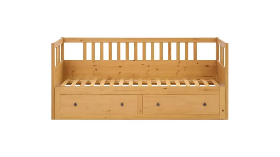 - Изготовлен из массива сосны. Дерево пропитано морилкой и покрыто прозрачным лаком на водной основе.