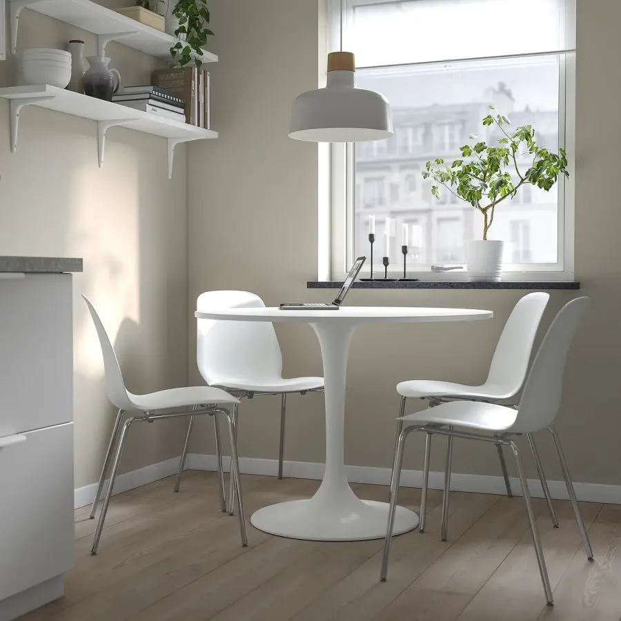 ИКЕА IKEA Круглая форма стола делает его идеальным для общения, так как все могут видеть друг друга. Стол очень прочный благодаря металлическому каркасу. На нем удобно сидеть благодаря чашеобразному сиденью и округлой форме спинки. Оригинальная икея/ikea