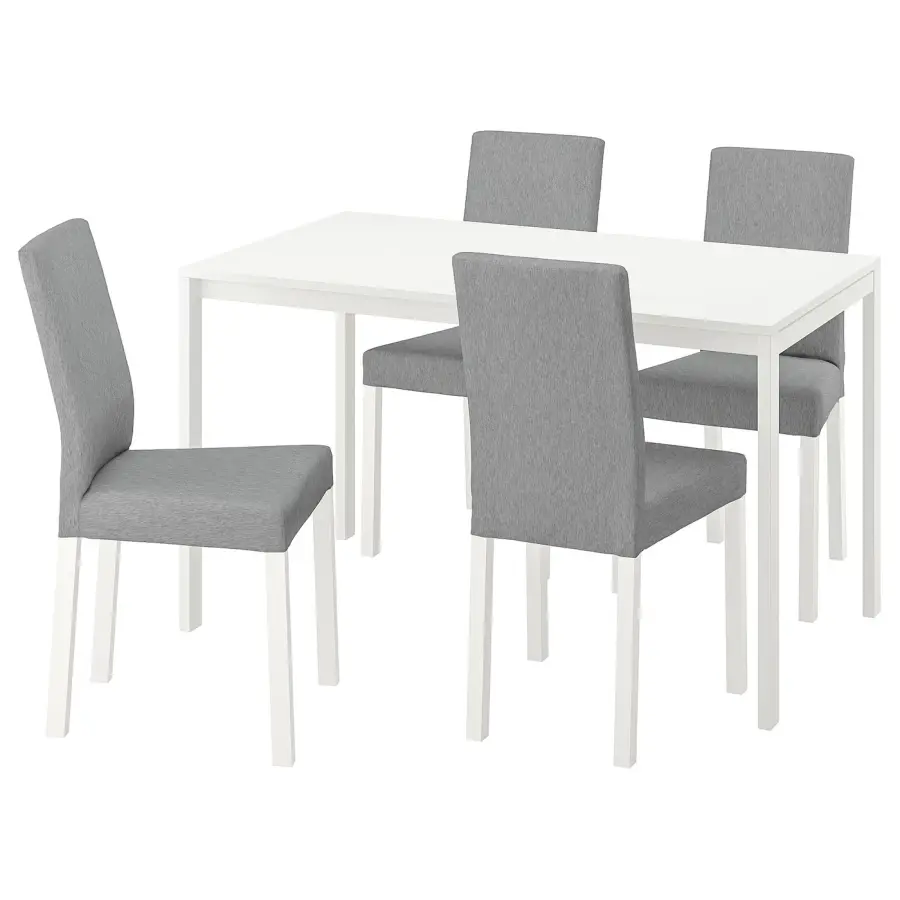 ИКЕА IKEA Меламиновая столешница влагостойкая, грязеотталкивающая и простая в уходе. Сиденье и высокая спинка набиты пеной и покрыты прочным, но мягким и гладким тканевым чехлом, чтобы сделать ваше пребывание за столом комфортным и приятным, чтобы вы могли оставаться дольше. После сытной трапезы приятно осознавать, что вы можете легко снять чехол со стула и постирать его в машине. Опять же. Благодаря регулярному проветриванию или стирке вы сохраните свое покрывало свежим и чистым, а также уменьшите количество пыли и грязи в вашем жилом пространстве. Прочный и долговечный каркас стула из цельного дерева. Силуэт без подлокотников позволяет вам пододвинуть эти стулья прямо к столу и сэкономить место на полу. Оригинальная икея/ikea