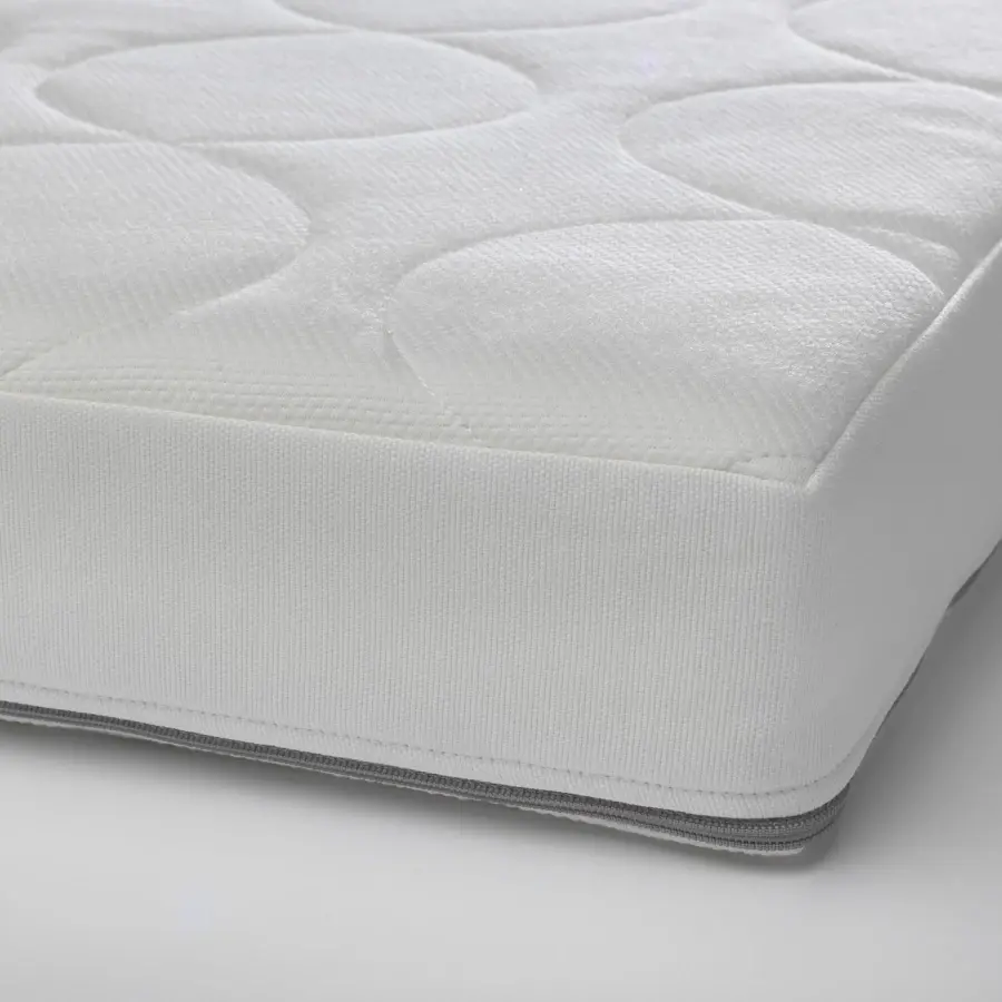 ИКЕА IKEA Матрас для детской кроватки, в котором вы можете увидеть и почувствовать заботу в каждой детали, от хорошо вентилируемой конструкции до прочной ткани и тщательной отстрочки. Внешний чехол легко снимается и его можно стирать в машине при 60°C. Неподвижный внутренний чехол повышает пожаробезопасность матраса и позволяет легко надевать внешний чехол обратно после стирки. Это также не позволяет детям класть содержимое матраса в рот. Карманные пружины позволяют воздуху свободно циркулировать в сердцевине матраса и обеспечивают вашему ребенку хорошо вентилируемый климат для сна с равномерной температурой. Молния этого матраса имеет небольшой карман, где вы можете спрятать язычок от рук любопытных детей. Оригинальная икея/ikea