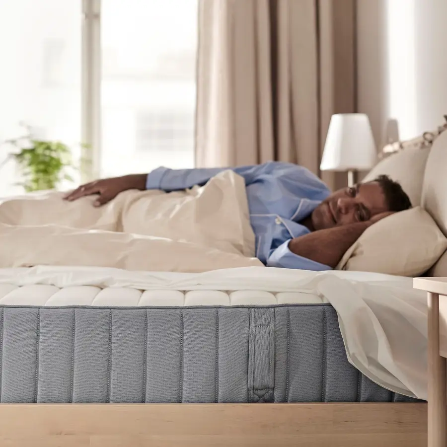 ИКЕА IKEA Карманные пружины, которые двигаются независимо друг от друга, и комфортные зоны в матрасе обеспечивают как твердую, так и мягкую поддержку именно там, где вам это нужно. 5 комфортных зон в матрасе обеспечивают очень точную поддержку и снимают давление на ваши плечи и бедра. Индивидуально упакованные карманные пружины изолируют движения, поэтому вы не будете мешать своему партнеру, если у вас есть привычка много двигаться во время сна. касайтесь и двигайтесь вместе с вами во время сна. Матрас упакован в рулон, поэтому его легко нести домой, а его практичные ручки по бокам помогают вам при перемещении матраса. Выберите подушку, которая вам нравится, чтобы сочетать ее с матрасом, чтобы по-настоящему улучшить свой сон. Пружины проходят от края до края, чтобы избежать зазора, если вы хотите разместить два матраса рядом друг с другом. Кроме того, матрасы легко соединяются друг с другом, когда их кладут рядом друг с другом. Чехол матраса прочно удерживается на матрасе. Его можно использовать только с одной стороны — матрас не нужно переворачивать. Вы можете удобно сидеть на краю своей кровати, так как усиленный край помогает сохранить матрас твердым и ровным. Чтобы сохранить матрас свежим, используйте средство для чистки текстиля, подходящее для обивки, и периодически пылесосьте его. Вы можете прочитать об условиях в гарантийной брошюре. Оригинальная икея/ikea