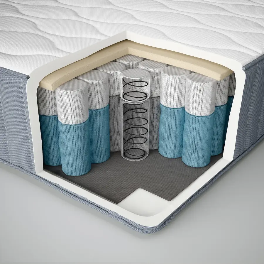 ИКЕА IKEA Инновационный S-образный сердечник матраса имеет два слоя карманных пружин, которые обеспечивают комфорт именно там, где это необходимо, и поддерживают вашу спину. Индивидуально свернутые карманные пружины изолируют движения, поэтому вы не будете мешать своему партнеру, если у вас есть привычка много двигаться во время сна. Точки давления, такие как плечи и бедра, поддерживаются 7 зонами комфорта - более мягкие пружины вокруг более тяжелых частей тела помогают держать ваше тело в правильном положении. воздух циркулирует и регулирует температуру вашего тела. Глубоко стеганая эластичная ткань вокруг верхней части придает искусно выполненный вид, она мягкая на ощупь и движется вместе с вами во время сна. Практичные ручки по бокам помогают вам при перемещении матраса. Выберите подушку, которая вам нравится, чтобы сочетать ее с матрасом, чтобы по-настоящему улучшить свой сон. Кроме того, матрасы легко соединяются друг с другом, когда их кладут рядом друг с другом. Чехол матраса прочно удерживается на матрасе. Его можно использовать только с одной стороны — матрас не нужно переворачивать. Вы можете удобно сидеть на краю своей кровати, так как усиленный край помогает сохранить матрас твердым и ровным. Вы можете прочитать об условиях в гарантийной брошюре. Оригинальная икея/ikea