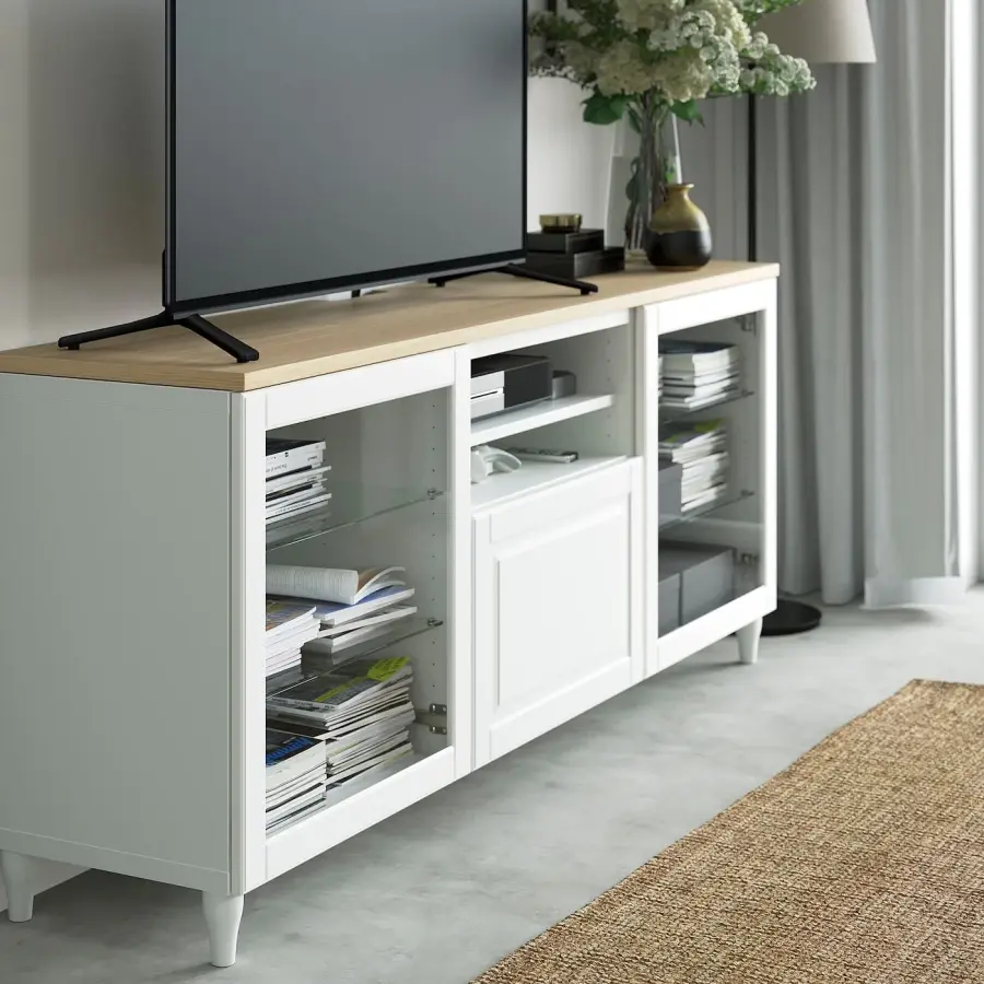 Поверхность верхней панели изготовлена из натурального шпона дерева, что придает вашему хранению ощущение тепла и естественности. Кабельный вывод для удобной прокладки кабелей.