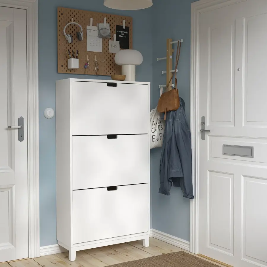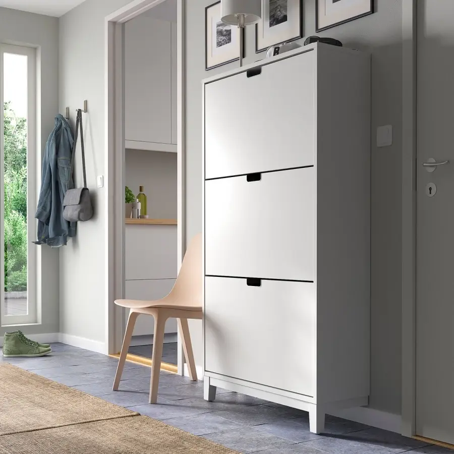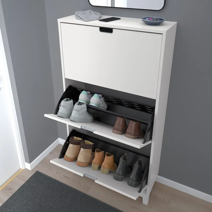 ИКЕА IKEA Помогает организовать обувь и одновременно экономит место на полу. У вас будет место для большого количества обуви, так как каждое отделение имеет два ряда. В обувном шкафу ваша обувь получает вентиляцию и пространство, необходимое для того, чтобы она дольше оставалась как новая. Вырезанные ручки имеют металлическую кромку, которая делает обувной шкаф более прочным и является характерной деталью дизайна. Ножки облегчают доступ и чистку под обувным шкафом. Оригинальная икея/ikea