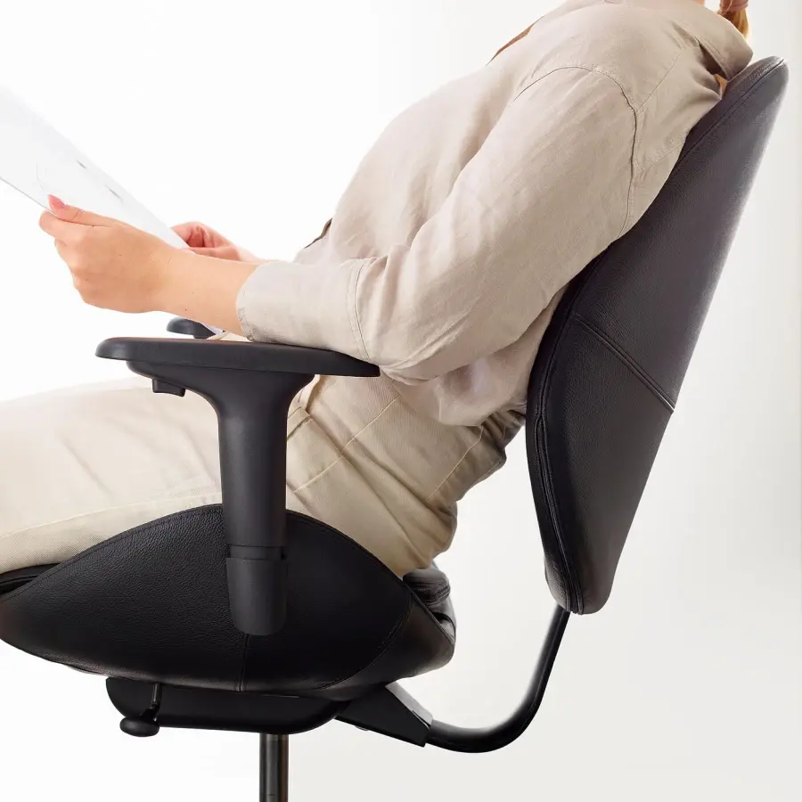 Гарантия 10 лет. Прочтите об условиях в гарантийной брошюре. Подходит для использования в бизнесе. Козья кожа прочна и прослужит долгие годы. Это эргономичное офисное кресло имеет множество функций, которые позволяют легко адаптировать его под ваше тело. Регулируемое по высоте сиденье позволяет регулировать высоту так, чтобы спина и ноги находились под углом 90°. Благодаря автоматическому натяжению наклона вес вашего тела определяет, какое сопротивление оказывает спинка. Это противодавление помогает вам сохранять активную позу в кресле. Синхронизированный механизм наклона позволяет креслу двигаться вместе с вами. Когда вы откидываетесь назад, спинка перемещается больше, чем сиденье, поэтому туловище/бедра открываются. Это улучшает кровообращение и поддерживает уровень энергии. Когда вы откидываетесь, синхронизированный механизм наклона позволяет ногам оставаться на полу, а ваш взгляд остается прямо перед собой. Ваша грудь растягивается, не оказывая давления на бедра, улучшая кровообращение. Регулируемая глубина сиденья обеспечивает правильную поддержку спины и равномерное распределение веса по подушке сиденья. Это предотвращает нарушение кровообращения в коленях и снижает давление на колени. Спинка может быть отрегулирована на 5 различных уровней высоты, чтобы обеспечить поддержку во всех нужных местах и помочь вашему телу сохранять естественную хорошую осанку. Регулируемая поясничная поддержка помогает поддерживать правильную осанку во время сидения, что снижает нагрузку на мышцы нижней части спины. Регулируемые по высоте и ширине подлокотники обеспечивают расслабленное положение рук и плеч и снижают риск напряжения, усталости и боли в плечах и шее. Блокировка наклона позволяет регулировать наклон и фиксировать его в 5 различных положениях: от низкого до вертикального. Функция безопасности блокирует ролики, когда в кресле никто не сидит, и надежно удерживает его на месте, когда вы встаете. Ролики предназначены для обеспечения легкости передвижения и маневренности как на ковровом покрытии, так и на твердых полах, а также на неровных поверхностях.