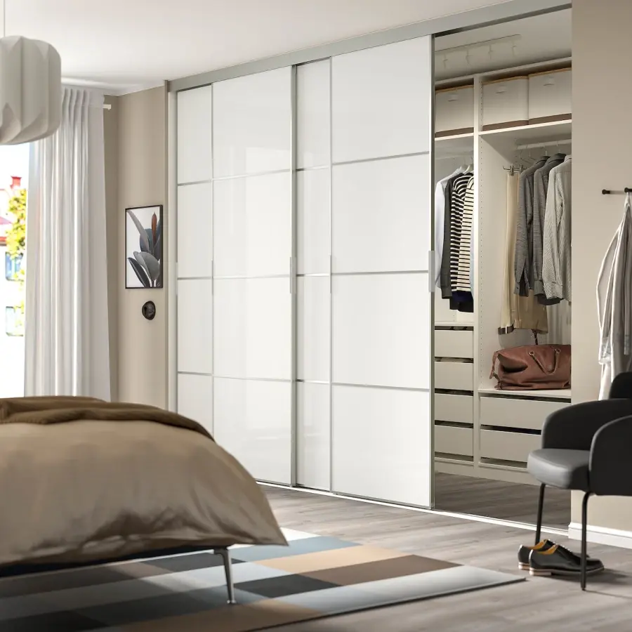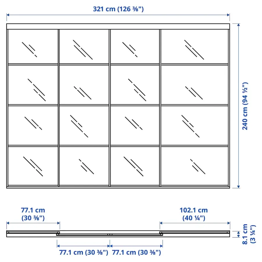 ИКЕА IKEA 10 лет гарантии. Ознакомьтесь с условиями в гарантийной брошюре. Откройте это решение в инструменте планировщика, чтобы изменить размер или цвет направляющих, дверной рамы или панелей. Вы также можете добавлять или удалять двери, пока не найдете свое любимое решение. Двери можно собирать в любом порядке. Просто помните, что вы должны иметь возможность достать и открыть все, что хранится за дверями. Оригинальная икея/ikea