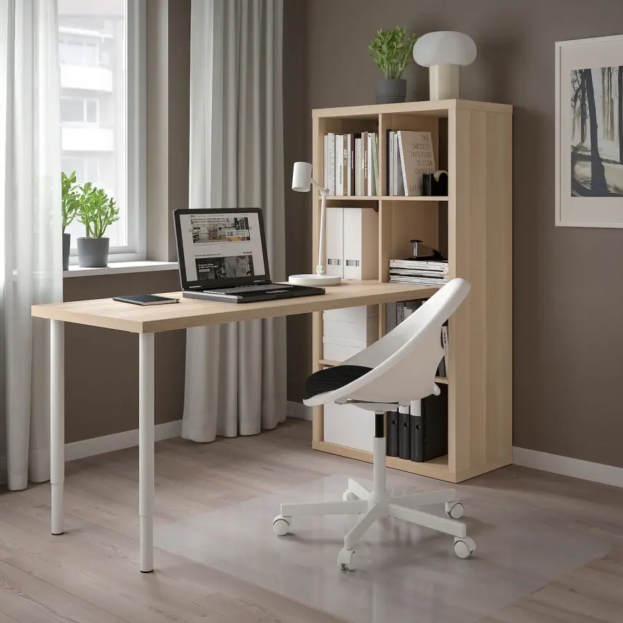 ИКЕА IKEA С помощью фурнитуры ИНЛЭГГ прикрепите столешницу и ножки к полке КАЛЛАКС. Или выберите готовую комбинацию с простым письменным столом и большим количеством места для хранения вещей. Оригинальная икея/ikea