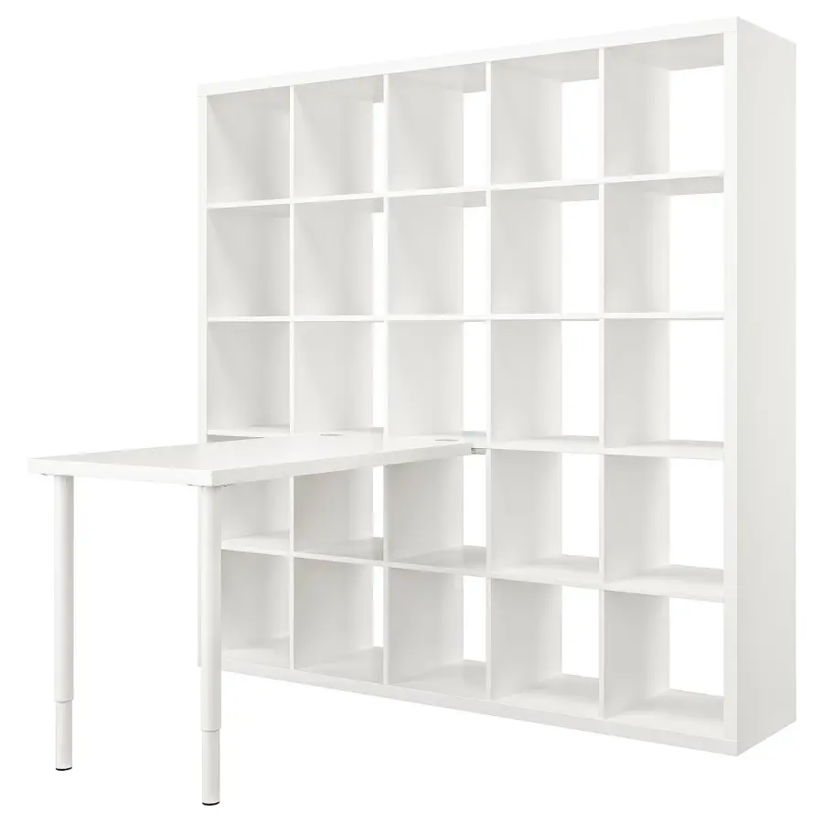 ИКЕА IKEA С помощью фурнитуры ИНЛЭГГ прикрепите столешницу и ножки к полке КАЛЛАКС. Или выберите готовую комбинацию с простым письменным столом и большим количеством места для хранения вещей. Оригинальная икея/ikea