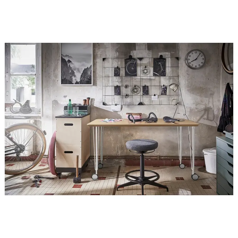 ИКЕА IKEA Предварительно просверленные отверстия для ножек облегчают сборку. Поверхность изготовлена из бамбука, прочного, возобновляемого и устойчивого материала. Запираемые ролики облегчают перемещение стола и его фиксацию на месте. Оригинальная икея/ikea