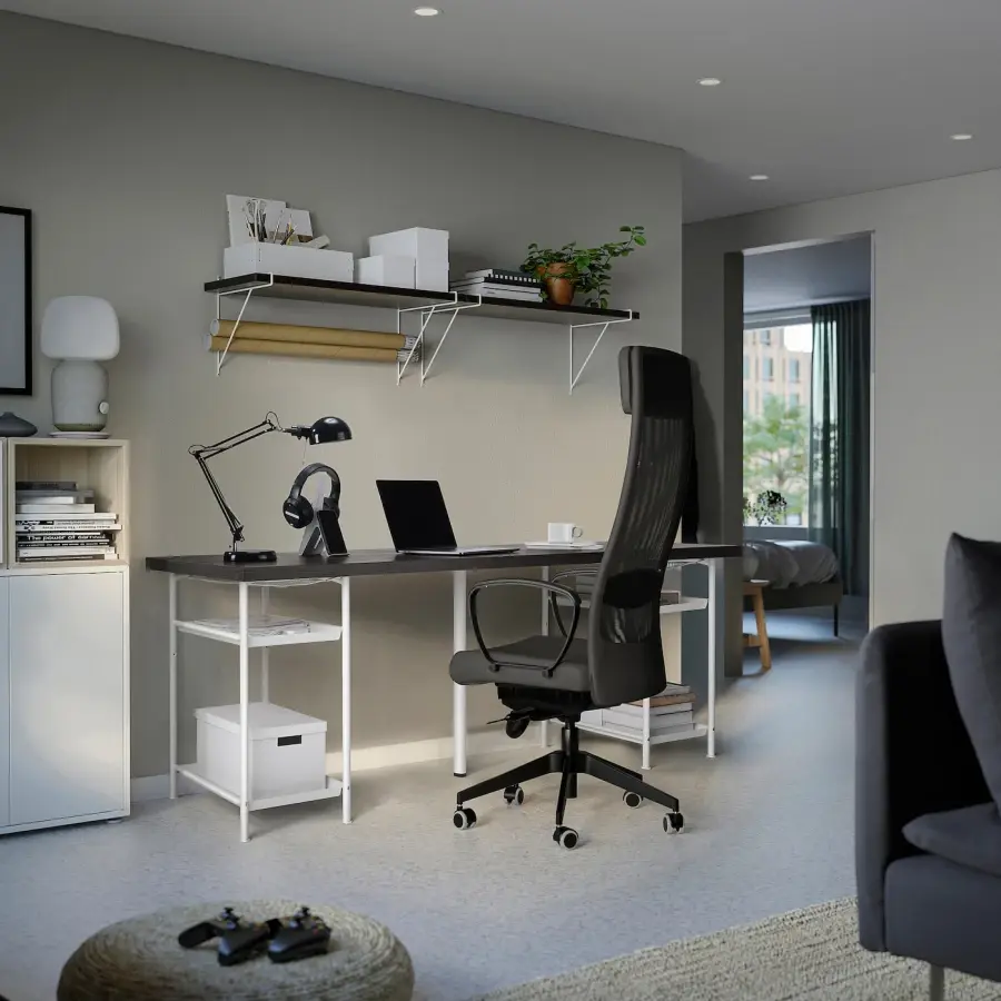 ИКЕА IKEA Большой письменный стол, на котором достаточно места для вашего компьютера, документов и других вещей, которые вы хотите иметь под рукой или хранить на полках. Если вы любите компанию, есть место даже для дополнительного стула. Оригинальная икея/ikea