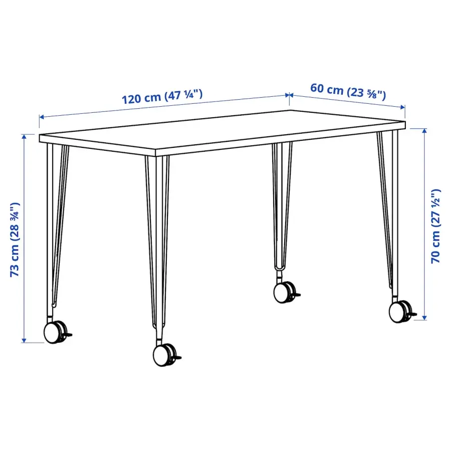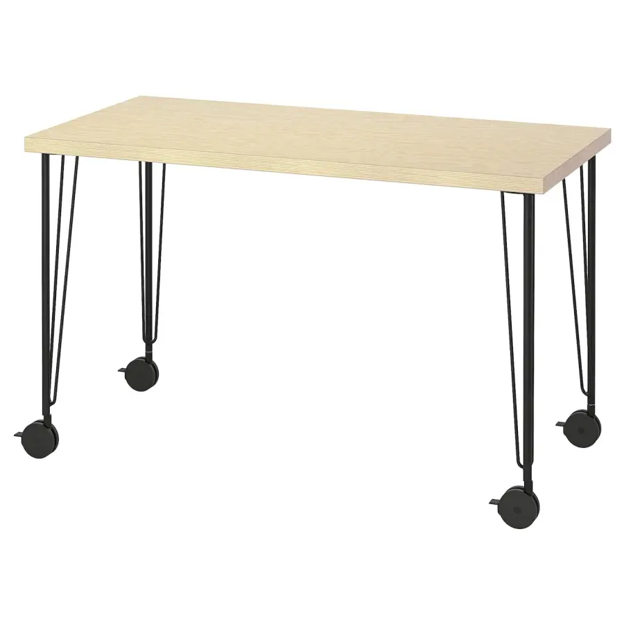 Письменный стол на колесиках - IKEA MITTCIRKEL/KRILLE, 120х60 см, черный/под беленый дуб, МИТТКЕРКЕЛ/КРИЛЛЕ ИКЕА