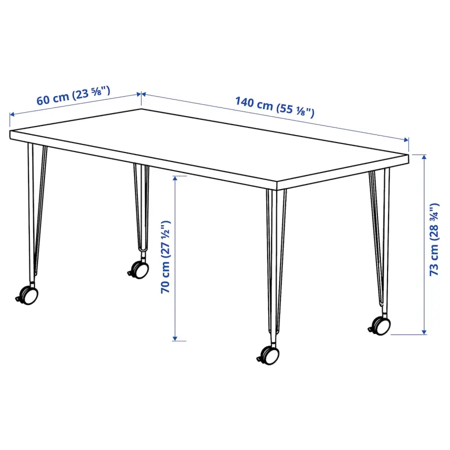 Письменный стол на колесиках - IKEA MITTCIRKEL/KRILLE, 140х60 см, черный/под беленый дуб, МИТТКЕРКЕЛ/КРИЛЛЕ ИКЕА