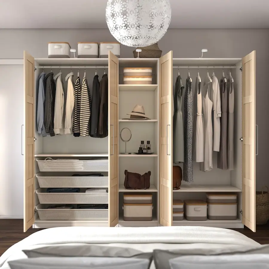 ИКЕА IKEA 10 лет гарантии. Прочтите об условиях в гарантийной брошюре. Вы можете легко адаптировать эту готовую комбинацию ПАКС/КОМПЛИМЕНТ в соответствии с вашими потребностями и вкусом с помощью инструмента планирования ПАКС. Регулируемые ножки позволяют компенсировать любые неровности пола. Петли со встроенными демпферами захватывают дверь и закрывают ее медленно, бесшумно и мягко. После выбора источника света специалист по планированию определит, какие аксессуары вам потребуются для завершения решения. Сетчатая корзина обеспечивает циркуляцию воздуха и идеально подходит для хранения сложенной одежды, носков или аксессуаров. Знаете ли вы, как легко перемещать внутренние органайзеры по вкусу или менять их позже? С небольшими изменениями вы можете изменить решение для хранения в соответствии с вашей одеждой, а не наоборот. Оригинальная икея/ikea