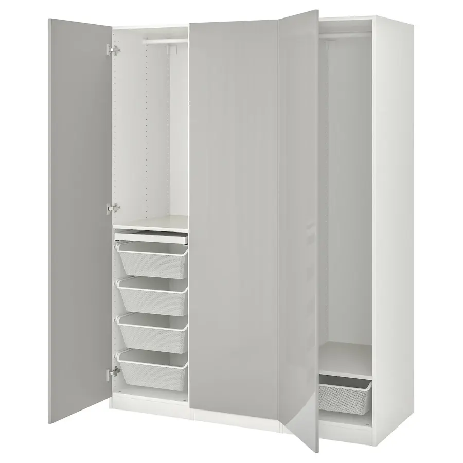 ИКЕА IKEA 10 лет гарантии. Ознакомьтесь с условиями в гарантийной брошюре. Вы можете легко адаптировать эту готовую комбинацию ПАКС/КОМПЛИМЕНТ в соответствии с вашими потребностями и вкусом с помощью инструмента планирования ПАКС. Регулируемые ножки позволяют компенсировать любые неровности пола. Петли со встроенными демпферами улавливают дверь и закрывают ее медленно, бесшумно и мягко. С PAX Planner вы можете легко дополнить свою комбинацию встроенным освещением. После выбора источника света планировщик подберет аксессуары, необходимые для завершения решения. Здесь есть место как для длинной, так и для короткой одежды. Есть только рубашки одинаковой длины? При желании легко добавить ящики или корзины. Это решение вмещает не менее 60 вешалок для одежды — и это только то, что вы поместите на вешалках для одежды! Сетчатая корзина обеспечивает циркуляцию воздуха и идеально подходит для хранения сложенной одежды, носков или аксессуаров. Выдвижные полки с войлочным ковриком для ваших украшений, часов или солнцезащитных очков. Оригинальная икея/ikea