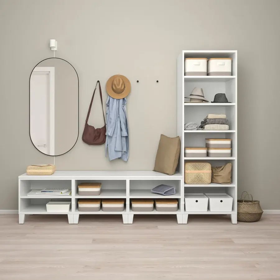 ИКЕА IKEA Вы можете легко трансформировать свое решение для хранения в соответствии с различными потребностями или создать другой внешний вид. Просто добавьте, уберите или переместите детали. Идеально подходит под наклонный потолок или лестницу. Вы можете легко прикрепить несколько рамок PLATSA друг к другу с помощью прилагаемых зажимов. Их легко монтировать и снимать без использования инструментов, и вы не видите отверстий для винтов снаружи. Верх на раме делает решение для хранения завершенным. Вы можете организовать внутреннюю часть с помощью интерьеров из серии HJÄLPA, а для экстерьера есть умные решения из серии LÄTTHET. Регулируемые ножки позволяют компенсировать любые неровности пола. Оригинальная икея/ikea