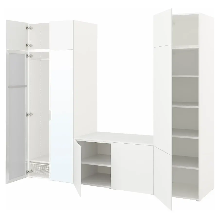 ИКЕА IKEA Со столешницей на низких рамах решение для хранения также превращается в практичную скамейку. Вы экономите место с зеркальной дверцей, так как вам не нужно отдельное зеркало. Комната сразу кажется больше, светлее и просторнее, выбрав зеркальные дверцы. Отличный способ преобразить узкую прихожую или крошечную спальню. Идеально подходит для ограниченного пространства, так как рама узкая. Вы можете легко соединить несколько рамок PLATSA друг с другом с помощью прилагаемых зажимов. Их легко монтировать и снимать без использования инструментов, и вы не видите видимых отверстий для винтов снаружи. Вы можете легко трансформировать свое решение для хранения в соответствии с различными потребностями или создать другой вид. Просто добавьте, уберите или переместите детали. Раму легко установить, просто соединив ее вместе, никаких инструментов не требуется. Регулируемые ножки позволяют компенсировать любые неровности пола. Двери можно повесить с открытием вправо или влево. Оригинальная икея/ikea