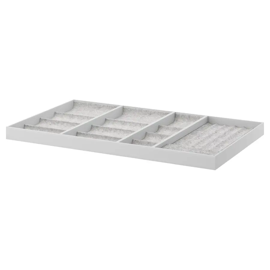 ИКЕА IKEA Вставка поможет вам хранить и упорядочивать ожерелья, кольца, серьги и другие аксессуары, такие как солнцезащитные очки и часы. У каждого аксессуара есть свое собственное отделение с отделениями разных размеров. И все они легко доступны, когда вы размещаете вставку так, чтобы большие отделения были обращены к спине. Мягкий войлок защищает ваши аксессуары и удерживает их на месте. Оригинальная икея/ikea