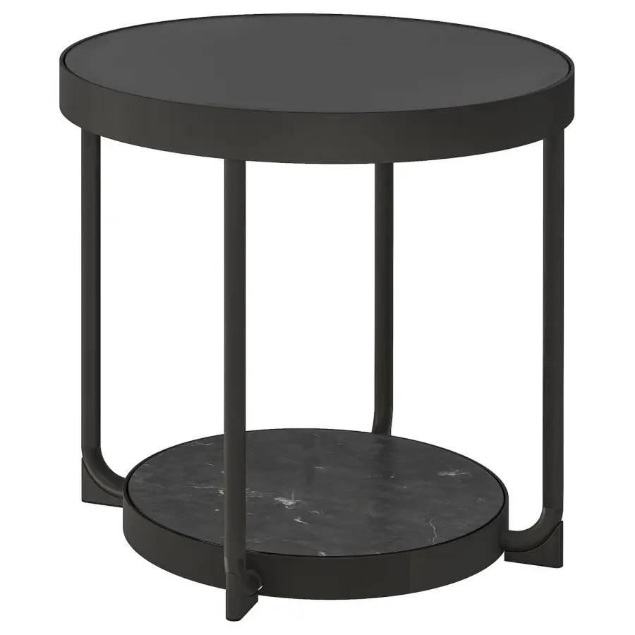 Продуманный дизайн с использованием различных материалов и отделок, столешница из дымчатого стекла, стальные трубчатые ножки с порошковым покрытием и основание с мраморным эффектом придают столу индивидуальный характер. Круглый журнальный/приставной столик FRÖTORP имеет простой и солидный вид, выполнен из прочных и вневременных материалов. Комбинируйте столы разных размеров, чтобы создать динамичную комнату и наслаждаться большим пространством за столом.