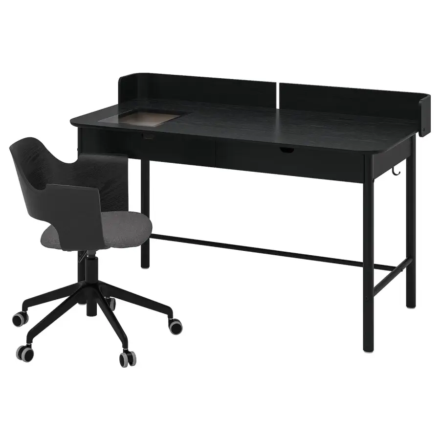 ИКЕА IKEA Готовое рабочее пространство с простым дизайном и тщательно продуманными функциями. Гнутая древесина придает стулу ФЬЕЛЛБЕРГЕТ элегантную форму, а письменный стол РИДСПО оснащен ящиком со стеклянной столешницей для заметок или интересной витрины. Оригинальная икея/ikea