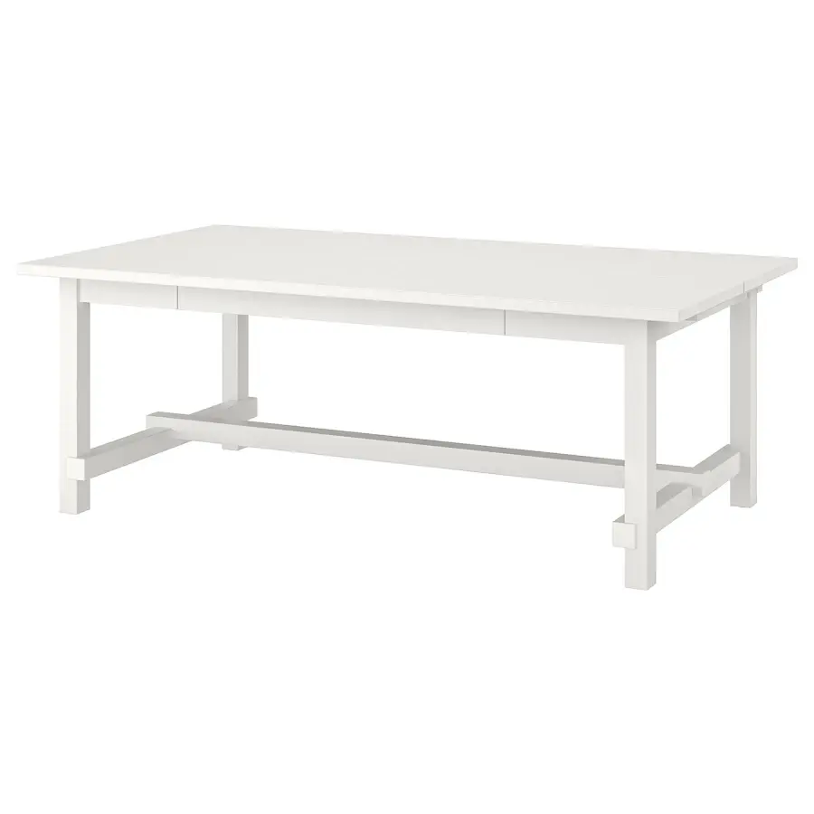 ИКЕА IKEA Устойчивая конструкция из массива дерева и шпона твердых пород делает каждый стол уникальным, с различными рисунками текстуры и естественными изменениями цвета, которые являются частью очарования дерева. Стол на 6 человек можно легко превратить в стол на 8 человек с помощью входящих в комплект самоскладывающихся створок. Самоскладывающиеся листы легко вставить, чтобы увеличить количество столов с 6 до 8, и так же легко снять и спрятать под столешницу, когда гости уйдут домой. Удлинительные створки увеличивают свес на каждом конце стола, создавая достаточно места для еще двух человек на коротких концах. Оригинальная икея/ikea
