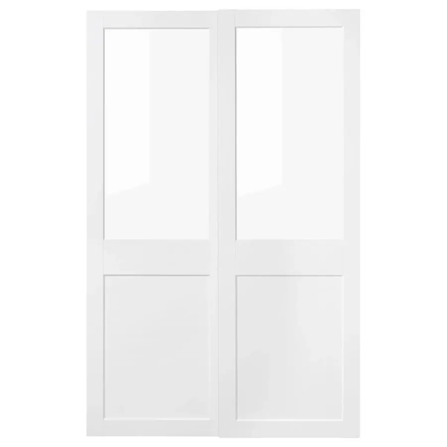 ИКЕА IKEA Раздвижные двери GRIMO со стеклянной панелью сверху идеально подходят для тех, кто любит похвастаться свежевыглаженными рубашками или яркими платьями – они также сочетаются с белыми каркасами гардероба из серии ПАКС. Оригинальная икея/ikea
