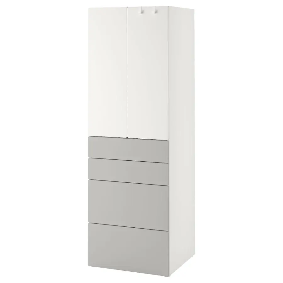 Шкаф детский - IKEA PLATSA/SMÅSTAD/SMASTAD, 60x57x181 см, белый/серый, ИКЕА
