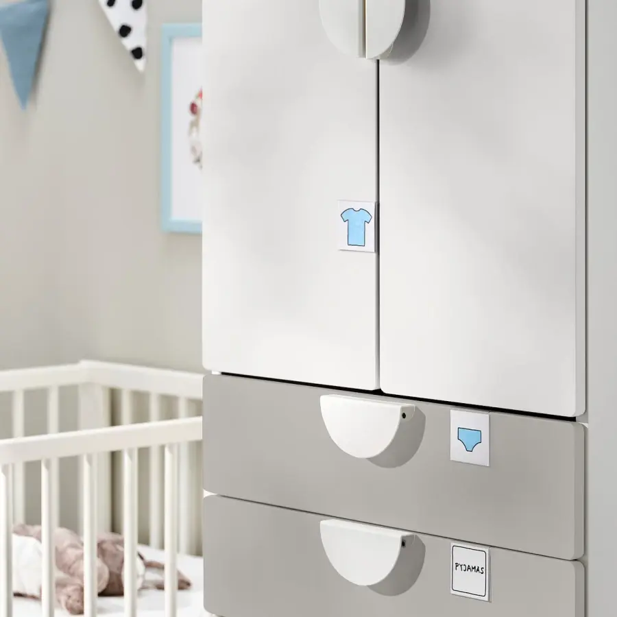 ИКЕА IKEA Ваш ребенок может использовать этот шкаф в течение многих лет, так как он достаточно глубокий, чтобы вместить вешалки для взрослых, и имеет внутреннюю часть, которую вы можете перемещать по мере роста вашего ребенка. Устойчиво стоит даже на неровном полу, поскольку в комплект входят регулируемые ножки. Двери имеют плавно закрывающиеся петли, благодаря которым они закрываются мягко и бесшумно. Оригинальная икея/ikea