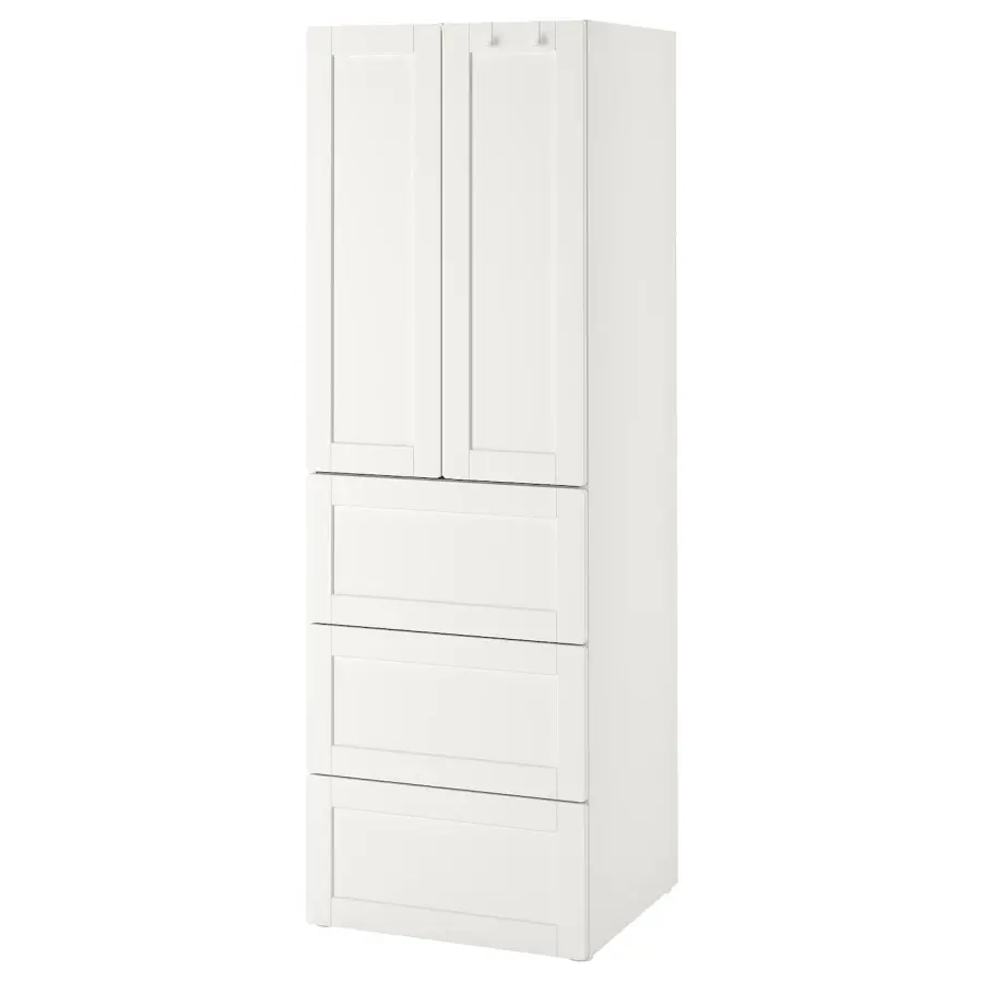 ИКЕА IKEA Этот шкаф дает вам много места для хранения на небольшой площади. Идеально подходит для мест с ограниченным пространством, так как узкая рама. Ваш ребенок может использовать этот шкаф в течение многих лет, так как он имеет внутреннюю часть, которую вы можете перемещать по мере роста ребенка. Двери имеют плавно закрывающиеся петли, благодаря которым они закрываются мягко и бесшумно даже после ожесточенного спора. чтобы установить, просто защелкнув их вместе, никаких инструментов не требуется. Продуманная конструкция направляющих позволяет ящику слегка выдвигаться, когда его выдвигают, для экономии места. Благодаря крючкам на штанге для одежды шансы на то, что одежда, рюкзаки и аксессуары вернутся обратно в шкаф, а не окажутся на полу, очень высоки. Вы можете организовать внутреннюю часть с помощью интерьеров из серии HJÄLPA, а для экстерьера есть умные решения из серии LÄTTHET. Оригинальная икея/ikea