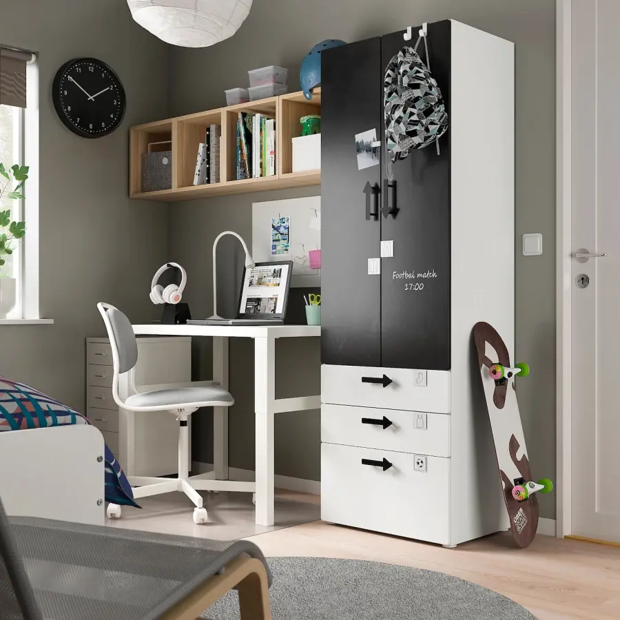 ИКЕА IKEA Этот шкаф дает вам много места для хранения на небольшой площади. Идеально подходит для ограниченного пространства, так как рама узкая. Чтобы вы и ваш ребенок избегали острых краев, все углы дверей SMÅSTAD мягко закруглены. Двери оснащены петлями с плавным закрыванием, благодаря чему они закрываются мягко и бесшумно даже после ожесточенного спора. а аксессуары найдут свое место в шкафу, а не на полу. Вы можете организовать внутреннюю часть с помощью предметов интерьера из серии HJÄLPA, а для экстерьера есть умные решения из серии LÄTTHET. Регулируемые ножки позволяют компенсировать любые неровности пола. Оригинальная икея/ikea