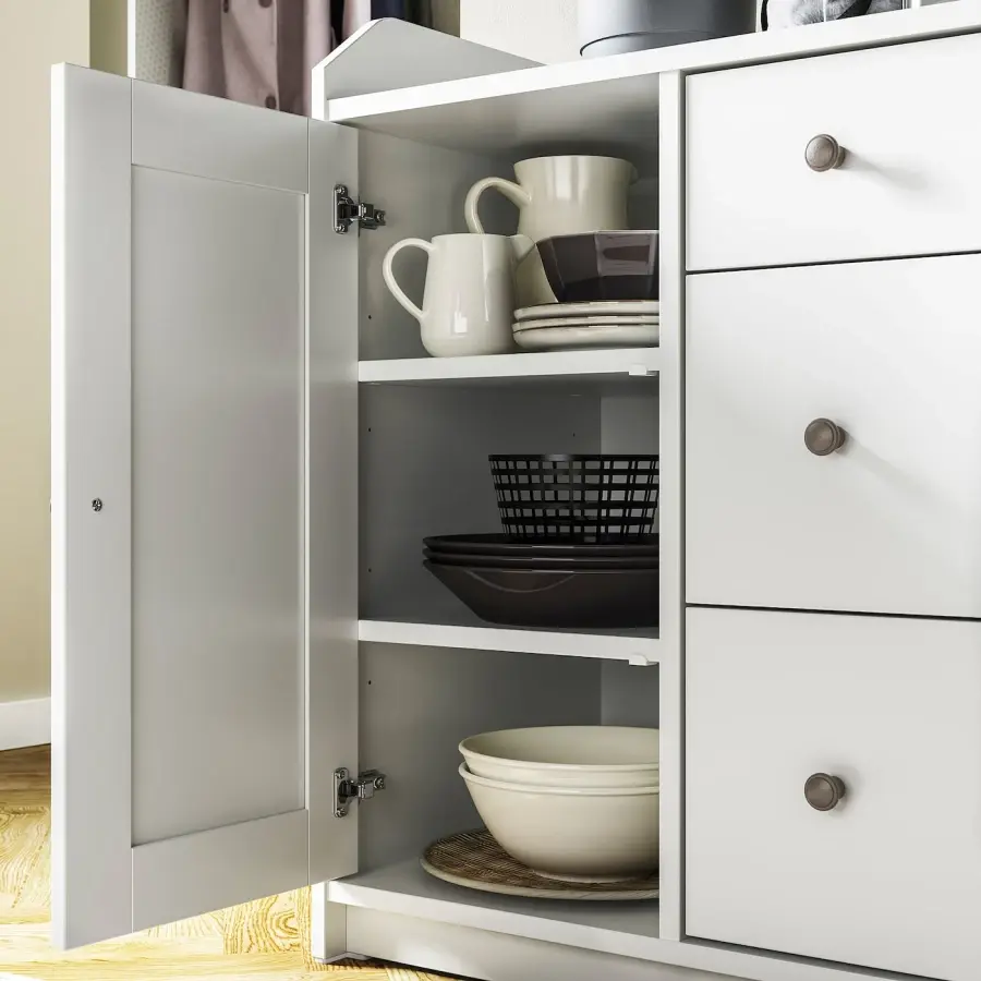 ИКЕА IKEA Разработана для использования в доме как самостоятельно, так и идеально сочетается с другой мебелью серии HAUGA, либо для согласования стиля, либо для создания больших решений для хранения. Конечно, ваш дом должен быть безопасным местом для всей семьи. Вот почему в комплект входит защитная фурнитура, чтобы вы могли прикрепить модуль для хранения к стене. Регулируемые полки позволяют легко настроить пространство в соответствии с вашими потребностями. Регулируемые петли позволяют регулировать дверь как по горизонтали, вертикали, так и по глубине. Характерная верхняя полка является общей чертой всей серии HAUGA и дополняет традиционный стиль. Независимо от того, используете ли вы его для шляп, коробок или украшений, край удерживает ваши вещи на месте. За панельными дверцами вы можете спрятать свои вещи и защитить их от пыли. Если вы хотите навести порядок внутри, вы можете дополнить интерьер аксессуарами из серии STUK. Оригинальная икея/ikea