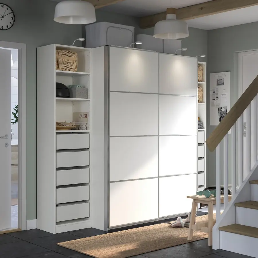 ИКЕА IKEA 10 лет гарантии. Прочтите об условиях в гарантийной брошюре.Вы можете легко адаптировать эту готовую комбинацию ПАКС/КОМПЛИМЕНТ в соответствии с вашими потребностями и вкусом с помощью инструмента планирования ПАКС.Регулируемые ножки позволяют компенсировать любые неровности пола.Раздвижные двери оставляют больше места для мебели, поскольку они не занимают места для открывания.Механизм плавного закрывания встроен в направляющие и улавливает двери, когда они движутся по направляющим, так что они открываются и закрываются медленно, тихо и мягко.С ПАКС Планировщик, вы можете легко дополнить свою комбинацию встроенным освещением. После выбора источника света планировщик определит, какие аксессуары вам потребуются для завершения решения. Глубокие оправы, которые поглотят много одежды. Достаточно глубины, чтобы повесить одежду сбоку, и много места в ящиках. Много ящиков, что означает, что вы можете разделить все, вплоть до мельчайшего носка, и сэкономить время на поиске вещей. Чувствуете себя еще более организованным? Дополните ящики коробками КОМПЛИМЕНТ, их можно комбинировать, чтобы они идеально подходили друг другу, чтобы вы могли использовать ящик полностью. Переверните панель, чтобы изменить внешний вид - каждая сторона имеет различную отделку. Выбирайте единый внешний вид или сочетание. Для раздвижных дверей не нужны ручки или ручки. Это создает вневременное выражение, которое легко комбинировать с разными стилями. Оригинальная икея/ikea