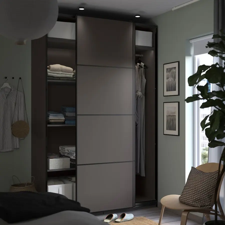 Гарантия 10 лет. Прочтите об условиях в гарантийной брошюре. Вы можете легко адаптировать эту готовую комбинацию ПАКС/КОМПЛИМЕНТ под свои нужды и вкусы с помощью инструмента планирования ПАКС. Регулируемые ножки позволяют компенсировать неровности пола. Раздвижные двери дают больше места для мебели, поскольку не требуют места для открытия. Механизм плавного закрывания встроен в направляющие и фиксирует двери при движении по направляющим, благодаря чему они открываются и закрываются медленно, тихо и мягко. С помощью PAX Planner вы можете легко дополнить свою комбинацию встроенным освещением. После выбора источника света проектировщик определит, какие аксессуары вам понадобятся для завершения решения. Сетчатая корзина обеспечивает циркуляцию воздуха и идеально подходит для хранения сложенной одежды, носков или аксессуаров. Знаете ли вы, что передвигать внутренние органайзеры по вкусу или менять их позже проще простого? С небольшими изменениями вы можете изменить решение для хранения так, чтобы оно подходило к вашей одежде, а не наоборот. Раздвижные двери не требуют ручек или ручек. Это создает вневременное выражение, которое легко сочетать с разными стилями.