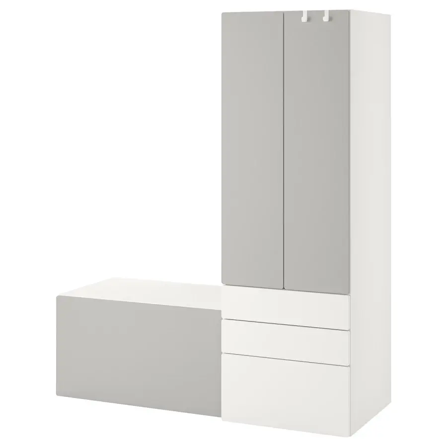 Ваш ребенок может использовать этот шкаф в течение многих лет, поскольку он достаточно глубокий, чтобы вместить вешалки для взрослых, и имеет внутреннее пространство, которое вы можете перемещать по мере роста ребенка. В гардеробе есть место для подвешивания одежды, проволочная корзина и несколько полок для сложенной одежды, а также ящики для носков и нижнего белья. В большом ящике достаточно места для крупных вещей, таких как мягкие игрушки и мячи, — они идеально подходят для того, чтобы быстро навести порядок. Двери оснащены петлями с плавным закрыванием, которые позволяют им закрываться мягко и бесшумно даже после ожесточенного спора.
