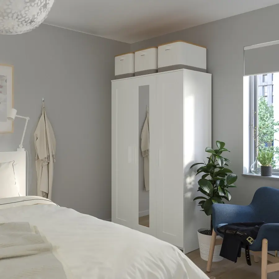 ИКЕА IKEA Конечно, ваш дом должен быть безопасным местом для всей семьи. Именно поэтому в комплект входит защитная фурнитура, чтобы вы могли прикрепить шкаф к стене. Зеркальную дверцу можно разместить слева, справа или посередине. Регулируемые полки позволяют легко настроить пространство в соответствии с вашими потребностями. Если вы хотите навести порядок внутри, вы можете дополнить интерьер аксессуарами из серии СКУББ. Оригинальная икея/ikea