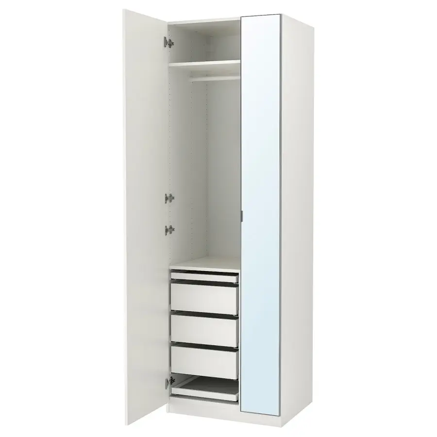 Гарантия 10 лет. Прочтите об условиях в гарантийной брошюре. Вы можете легко адаптировать эту готовую комбинацию ПАКС/КОМПЛИМЕНТ под свои нужды и вкусы с помощью инструмента планирования ПАКС. Регулируемые ножки позволяют компенсировать неровности пола. Петли со встроенными демпферами захватывают дверь и закрывают ее медленно, бесшумно и мягко. С помощью PAX Planner вы можете легко дополнить свою комбинацию встроенным освещением. После выбора источника света проектировщик определит, какие аксессуары вам понадобятся для завершения решения. Благодаря умному разделителю на вешалке найдется место как для длинной, так и для короткой одежды, не теряя места для хранения под короткой одеждой. Чувствуете себя еще более организованным? Дополните выдвижные ящики коробками КОМПЛИМЕНТ, их можно идеально комбинировать, чтобы можно было использовать ящик полностью. Если выбрать зеркальные двери, комната сразу станет больше, светлее и просторнее. Отличный способ преобразить узкую прихожую или крохотную спальню.