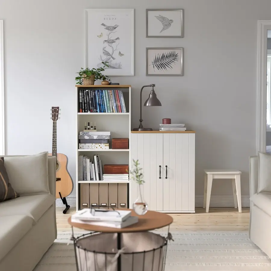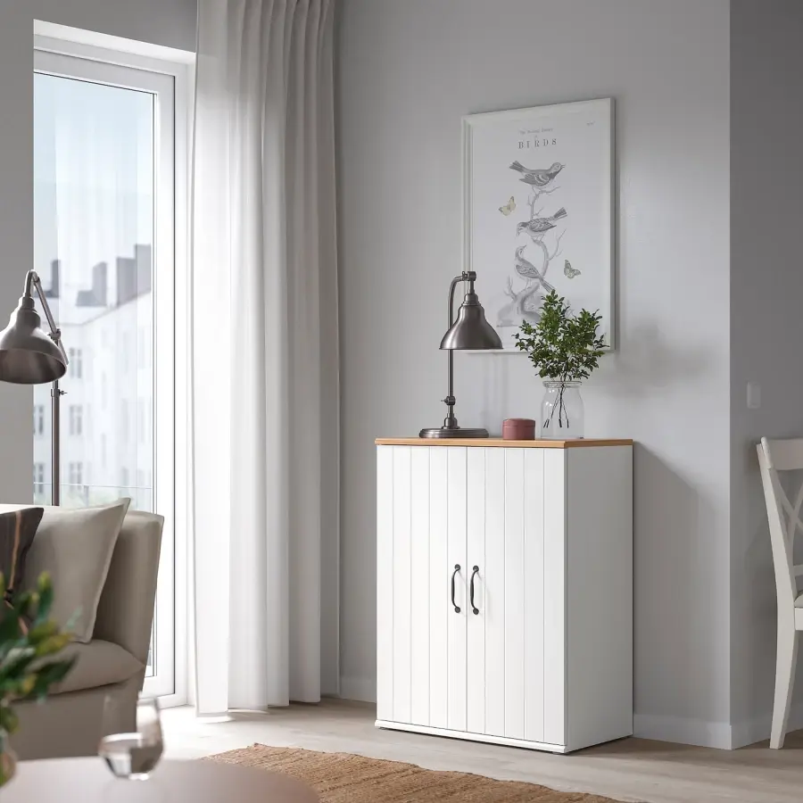 ИКЕА IKEA Мебель серии СКРУВБИ хорошо сочетается друг с другом. Комбинируйте и сочетайте их по своему усмотрению или используйте каждый предмет мебели как красивый солитер. Такие детали, как профилированные края верхней и нижней панели, рифленые двери и кованые ручки, придают мебели выразительный вид и дополняют традиционный стиль. Выражение дуба на верхней панели создает теплый и естественный вид. 2 передвижные полки позволяют легко адаптировать пространство к вашим потребностям хранения. нажмите на предварительно просверленные отверстия и расширьте при затяжке. Поверхность прочная и ее легко содержать в чистоте. Оригинальная икея/ikea