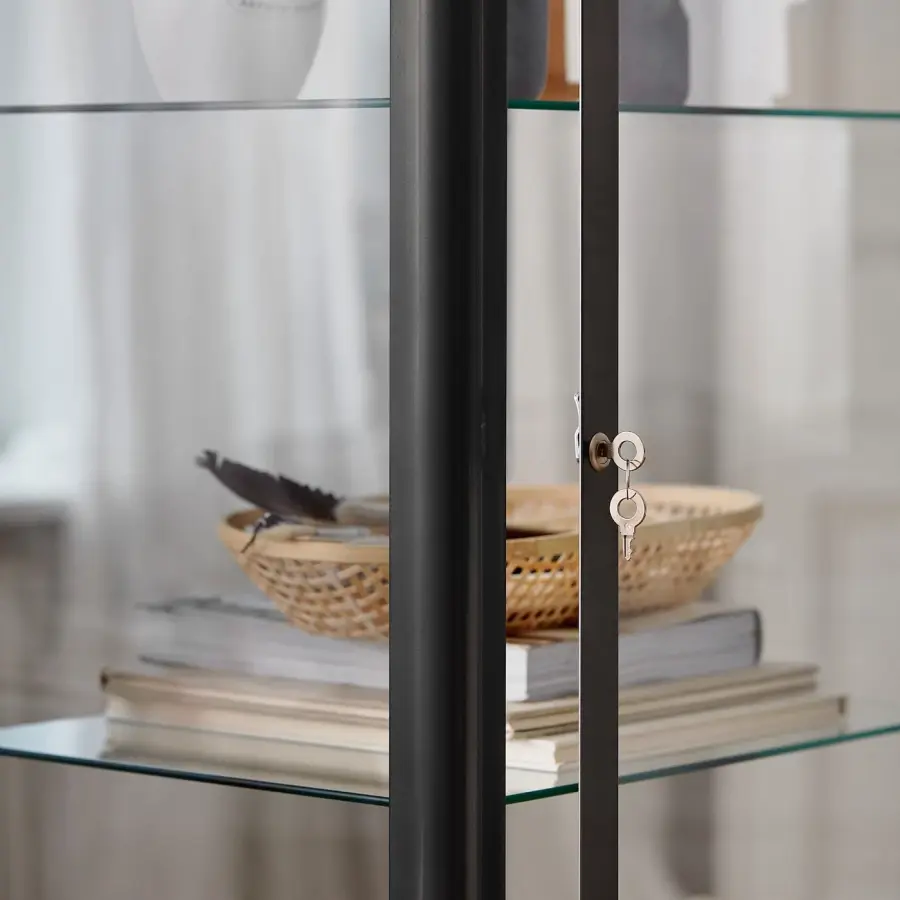 ИКЕА IKEA С помощью шкафа со стеклянной дверью вы можете не только защитить свою стеклянную посуду или любимую коллекцию, но и защитить ее. Вы можете легко изменить высоту в соответствии с вашими потребностями в хранении, поскольку полки регулируются. Регулируемые ножки; устойчиво стоит даже на неровном полу. Оригинальная икея/ikea