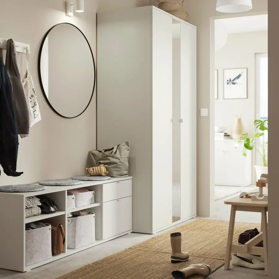 ИКЕА IKEA Встроенное зеркало в полный рост делает комнату визуально больше и экономит место на стене — разумное решение для небольших жилых помещений. Вешалка для одежды может быть установлена на 2 разных высотах. Каркас легко собирается благодаря продуманной конструкции с клиновидными дюбелями, которые легко вдавливаются в предварительно просверленные отверстия. Большинство материалов, используемых в VIHALS, поступают из возобновляемых источников. Оригинальная икея/ikea