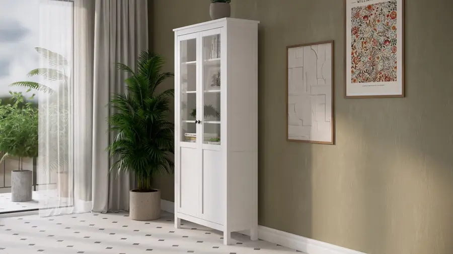 Шкаф-витрина стекло/панель - аналог IKEA HEMNES / ХЕМНЭС/ ХЕМНЕС / КЫМОР / ИКЕА 90х198х37 см, белый